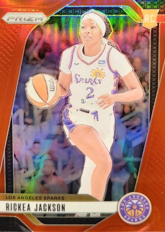 The Rickea Jackson 2024 Prizm WNBA #60 Red /299 Rookie card in Raw condition has moved up $3.25 (+100%) in the last 30 days and was last sold for $6.50 .