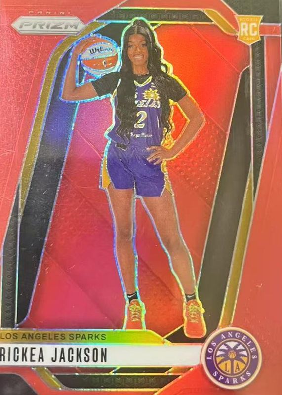 The Rickea Jackson 2024 Prizm WNBA #144 Rookie Variation - Red /299 card in Raw condition has not changed in price in the last 30 days and was last sold for $7.50 .