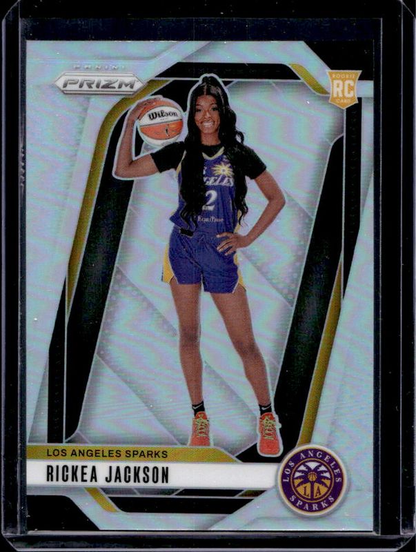 The Rickea Jackson 2024 Prizm WNBA #144 Silver Rookie card is 1 of 143 Rickea Jackson's card variations in the 2024 Prizm WNBA set being tracked by Sports Card Investor, including #144 Base, #60 Base, #144 Rookie Variation, #144 Blue Velocity, and #60 Blue Velocity.