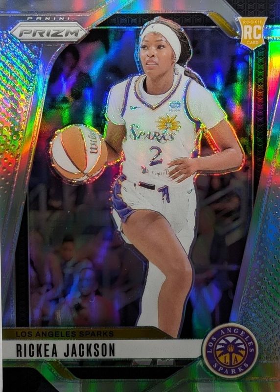 The Rickea Jackson 2024 Prizm WNBA #60 Silver Rookie card in Raw condition has moved down -$1.43 (-35.4%) in the last 30 days and was last sold for $2.61 .