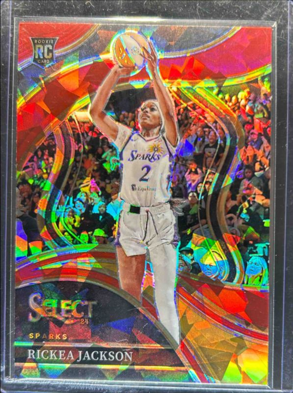 The Rickea Jackson 2024 Select WNBA #235 Base Red Ice Rookie card is 1 of 227 Rickea Jackson's card variations in the 2024 Select WNBA set being tracked by Sports Card Investor, including #58 Concourse, #235 Courtside, #127 Premier Level, #235 Base, and #127 Base.