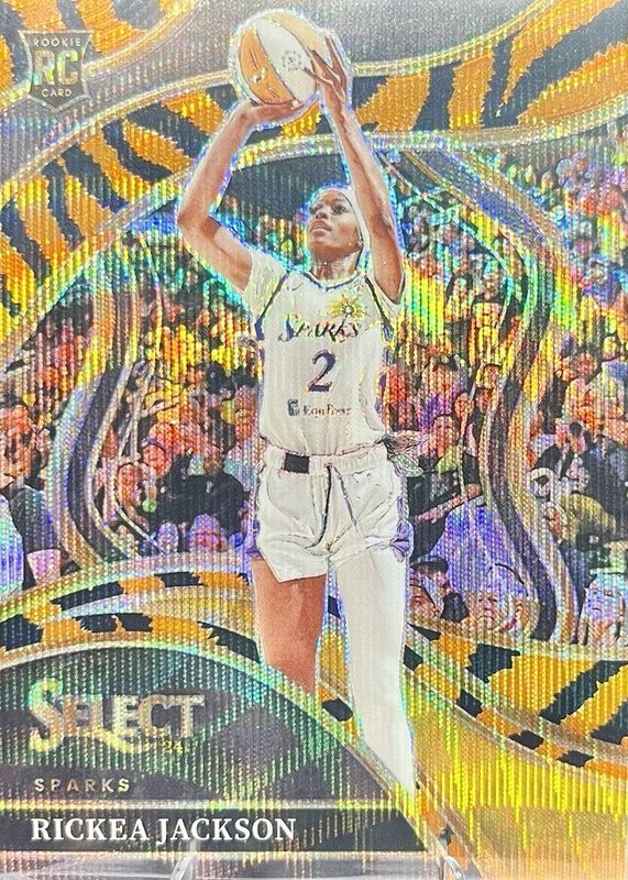 The Rickea Jackson 2024 Select WNBA #235 Courtside Tiger /(SSP) Rookie card in Raw condition has not changed in price in the last 30 days and was last sold for $125.00 .