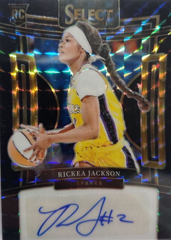 The Rickea Jackson 2024 Select WNBA #SG-RJ Signatures - Black Finite /1 Rookie card in Raw condition has not changed in price in the last 30 days and was last sold for $1,400.00 .