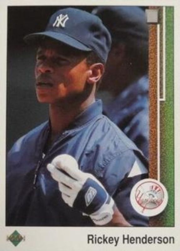 The Rickey Henderson 1989 Upper Deck Blank Back Show Samples card is 1 of 2 Rickey Henderson's card variations in the 1989 Upper Deck set being tracked by Sports Card Investor, including Base.