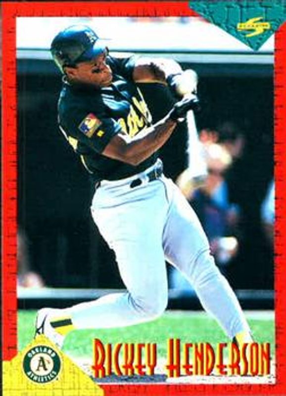 The Rickey Henderson 1994 Score Rookie & Traded #RT13 Base card is 1 of 3 Rickey Henderson's card variations in the 1994 Score Rookie & Traded set being tracked by Sports Card Investor, including Gold Rush, and Changing Places.