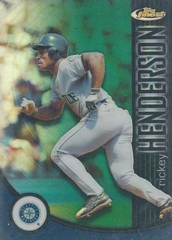 The Rickey Henderson 2001 Topps Finest #48 Refractors /499 card is 1 of 2 Rickey Henderson's card variations in the 2001 Topps Finest set being tracked by Sports Card Investor, including Base /999.