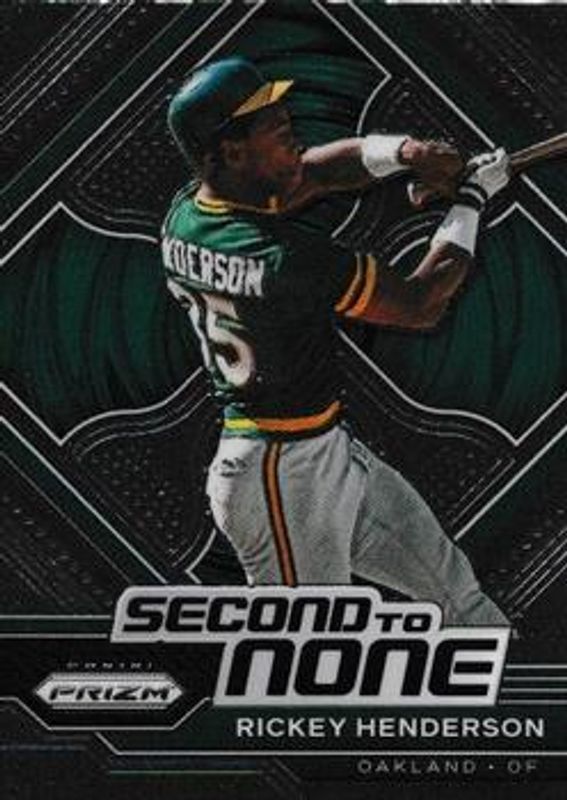 The Rickey Henderson 2023 Prizm #SN7 Second to None card is 1 of 54 Rickey Henderson's card variations in the 2023 Prizm set being tracked by Sports Card Investor, including Base, Blue Ice, Giraffe, Green Ice, and Hyper.