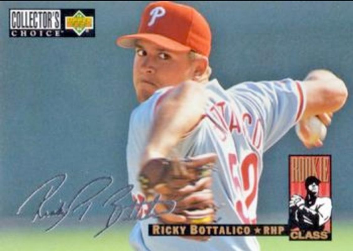 The Ricky Bottalico 1994 Upper Deck Collector's Choice #653 Silver Signatures Rookie card is 1 of 3 Ricky Bottalico's card variations in the 1994 Upper Deck Collector's Choice set being tracked by Sports Card Investor, including Base, and Gold Signatures.