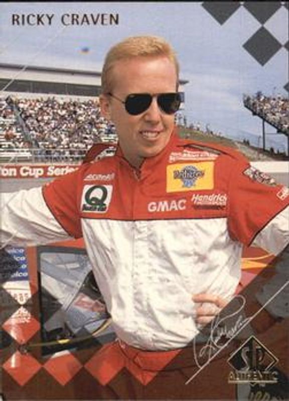 The Ricky Craven 1998 SP Authentic #25 Base card is 1 of 6 Ricky Craven's card variations in the 1998 SP Authentic set being tracked by Sports Card Investor, including Base, Behind the Wheel, Behind the Wheel - Gold, Sign of the Times, and Behind the Wheel Die-Cut /100.