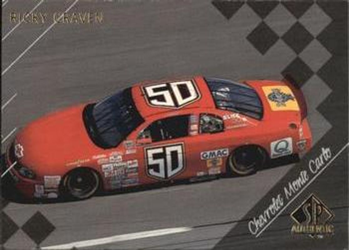 The Ricky Craven 1998 SP Authentic #59 Base card is 1 of 6 Ricky Craven's card variations in the 1998 SP Authentic set being tracked by Sports Card Investor, including Base, Behind the Wheel, Behind the Wheel - Gold, Sign of the Times, and Behind the Wheel Die-Cut /100.
