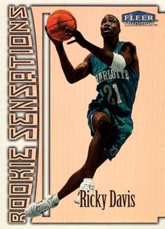 The Ricky Davis 1999 Fleer Tradition #3-RS Rookie Sensations card is 1 of 4 Ricky Davis' card variations in the 1999 Fleer Tradition set being tracked by Sports Card Investor, including Base, Roundball Collection, and Supreme Court Collection /20.