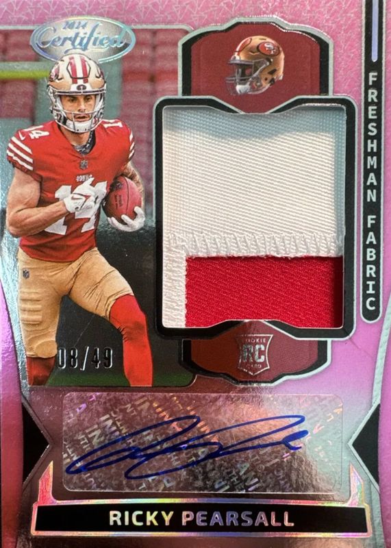 2024 Certified Ricky Pearsall Pink Freshman Fabric Rookie Patch Auto RC /49 FOTL