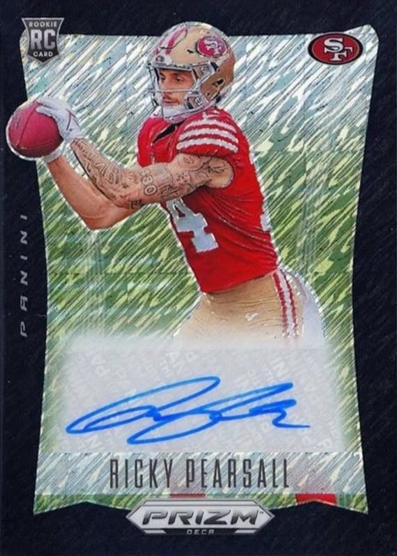 The Ricky Pearsall 2024 Prizm #383 Rookie Autographs - Black Shimmer /1 card in Raw condition has not changed in price in the last 30 days.