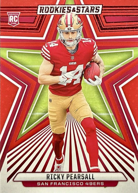 The Ricky Pearsall 2024 Rookies & Stars #184 Red card in Raw condition has moved down -$0.39 (-26.2%) in the last 30 days and was last sold for $1.10 .
