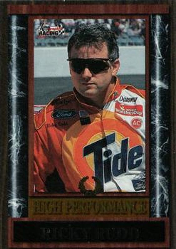 The Ricky Rudd 1996 Score Board Autographed #HP-10 High Performance card is 1 of 4 Ricky Rudd's card variations in the 1996 Score Board Autographed set being tracked by Sports Card Investor, including Base, Autographs, and Autographs - Gold /250.