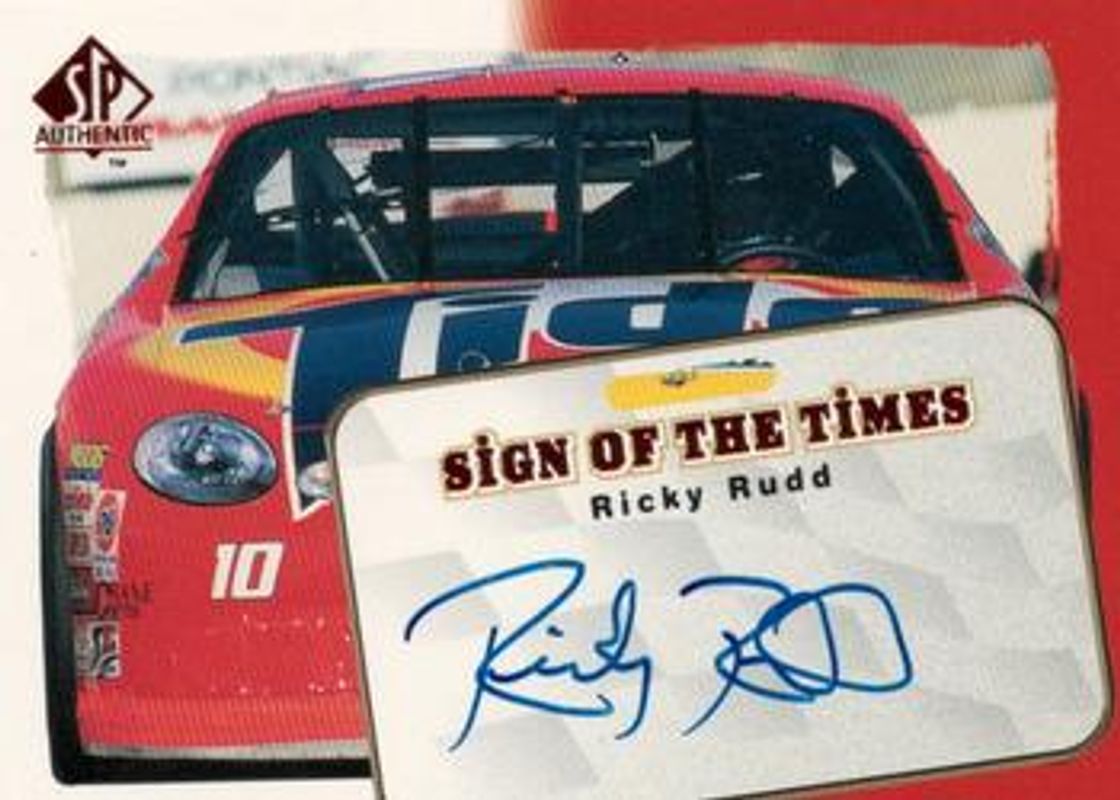 The Ricky Rudd 1998 SP Authentic #ST10 Sign of the Times - Red /45 card is 1 of 7 Ricky Rudd's card variations in the 1998 SP Authentic set being tracked by Sports Card Investor, including #76 Base, #10 Base, #44 Base, #BW16 Behind the Wheel, and #BW16 Behind the Wheel - Gold.