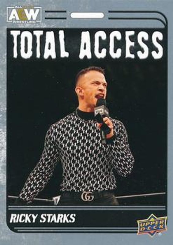 The Ricky Starks 2023 Upper Deck AEW #TA-9 Total Access Silver card is 1 of 40 Ricky Starks' card variations in the 2023 Upper Deck AEW set being tracked by Sports Card Investor, including Base, Clear Cut, Diamond Plate, Gold, and Pyro.