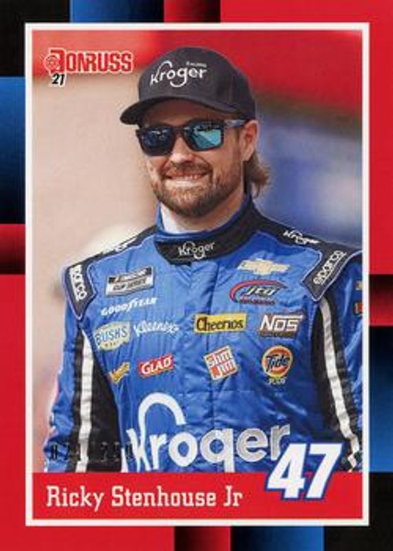 The Ricky Stenhouse Jr. 2021 Donruss NASCAR #164 Red /299 card is 1 of 90 Ricky Stenhouse Jr.'s card variations in the 2021 Donruss NASCAR set being tracked by Sports Card Investor, including #20 Base, #72 Base, #164 Base, #72 Carolina Blue, and #20 Carolina Blue.
