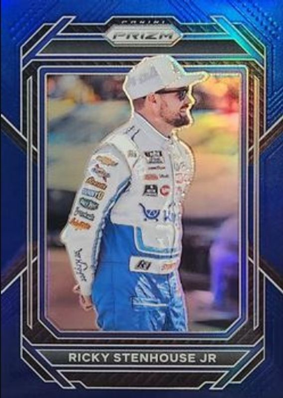 The Ricky Stenhouse Jr. 2023 Prizm NASCAR #19 Blue /499 card is 1 of 52 Ricky Stenhouse Jr.'s card variations in the 2023 Prizm NASCAR set being tracked by Sports Card Investor, including Base, Hyper Blue & Carolina Blue, Hyper Purple & Yellow, Reactive Orange, and Red.