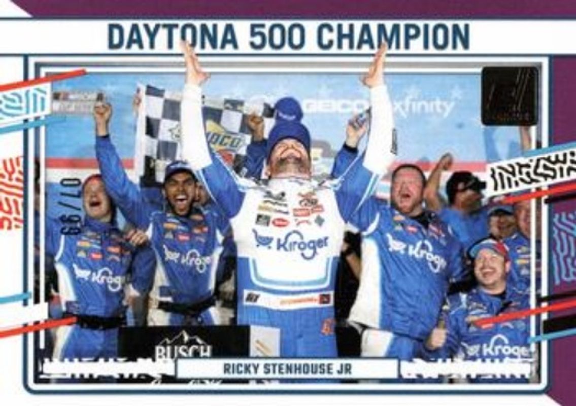 The Ricky Stenhouse Jr. 2024 Donruss NASCAR #171 Purple /99 card is 1 of 97 Ricky Stenhouse Jr.'s card variations in the 2024 Donruss NASCAR set being tracked by Sports Card Investor, including #54b Base, #171 Base, #54a Base, #171 Optic, and #54 Optic.