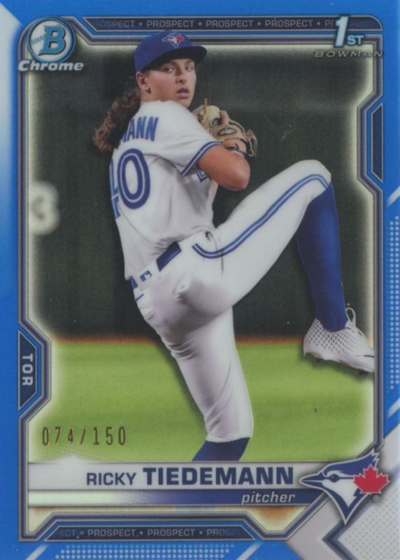 2021 Bowman Chrome Draft Blue Refractor Ricky Tiedemann /150 Toronto Blue Jays