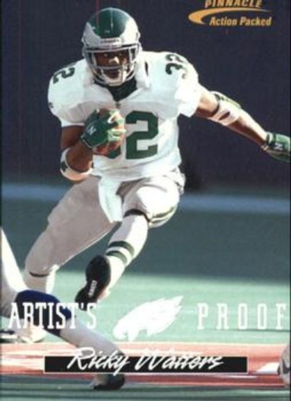 The Ricky Watters 1996 Action Packed Flagship #17 Artist's Proofs card is 1 of 4 Ricky Watters' card variations in the 1996 Action Packed Flagship set being tracked by Sports Card Investor, including Base, Studs, and Studs 24K Gold /200.