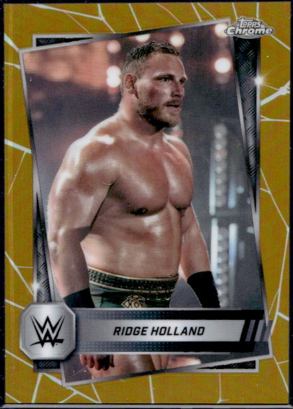 The Ridge Holland 2025 Topps Chrome WWE #82 Gold Refractor /50 card is 1 of 36 Ridge Holland's card variations in the 2025 Topps Chrome WWE set being tracked by Sports Card Investor, including Base, Black & Gold Refractor, Geometric Refractor, Neon Green & Black Refractor, and Pink Shimmer Refractor.