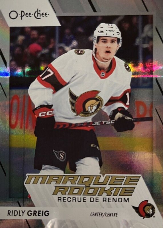 This card is 1 of 13 Ridly Greig's card variations in the 2023 O-Pee-Chee set being tracked by Sports Card Investor, including Marquee Rookies, Marquee Rookies - Blue Border, Marquee Rookies - Red Border, Marquee Rookies - Retro, and Marquee Rookies - Retro Blank Back.