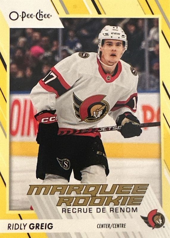 2023-24 O-PEE-CHEE Marquee Rookie YELLOW BORDER Ridly Greig Ottawa Senators! 543