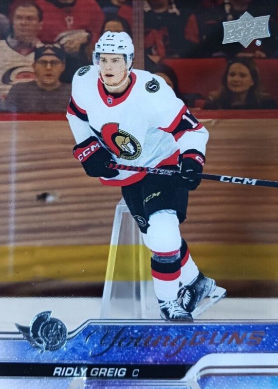 The Ridly Greig 2023 Upper Deck #212 Young Guns - Clear Cut Rookie card in Raw condition has moved down -$0.70 (-4.3%) in the last 30 days and was last sold for $15.58 .