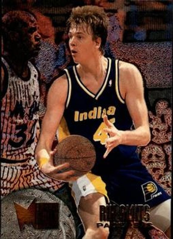 The Rik Smits 1995 Metal #46 Base card is 1 of 3 Rik Smits' card variations in the 1995 Metal set being tracked by Sports Card Investor, including Silver Spotlight, and Steel Tower.