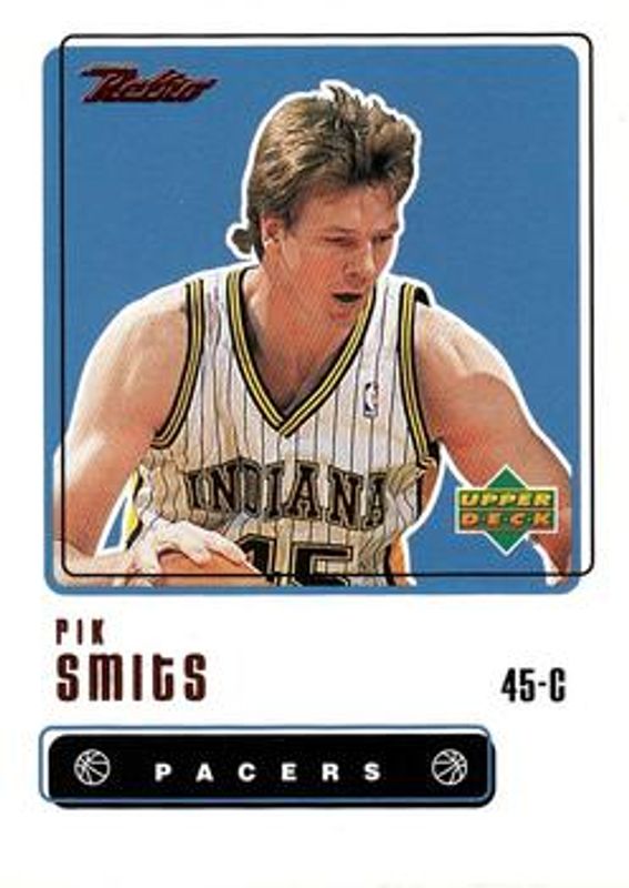 The Rik Smits 1999 Upper Deck Retro #19 Base card is 1 of 3 Rik Smits' card variations in the 1999 Upper Deck Retro set being tracked by Sports Card Investor, including Gold /250, and Platinum /1.