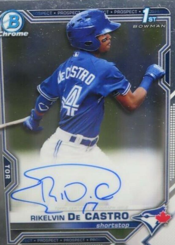 Rikelvin De Castro's Baseball cards are available in at least 1 sets. Rikelvin De Castro's biggest 7-day price movers are 2021 Bowman Chrome #CPA-RDCA Prospect Auto (1st), and 2021 Bowman Chrome #CPA-RDCA Prospect Auto - Refractor /499 (1st).