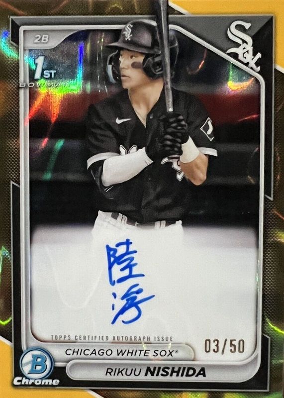 RIKUU NISHIDA 2024 BOWMAN CHROME 1ST AUTOGRAPH GOLD REFRACTOR AUTO /50 Q5361