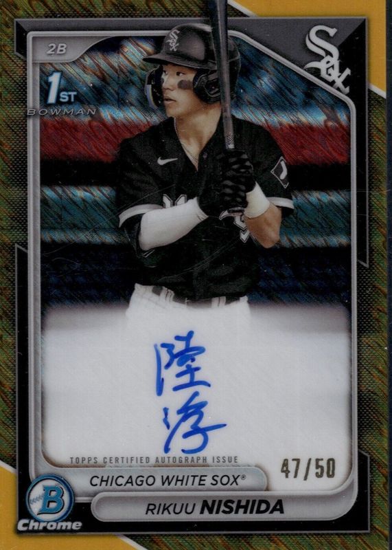RIKUU NISHIDA 2024 BOWMAN CHROME 1ST PROSPECT GOLD SHIMMER REFRACTOR AUTO 47/50