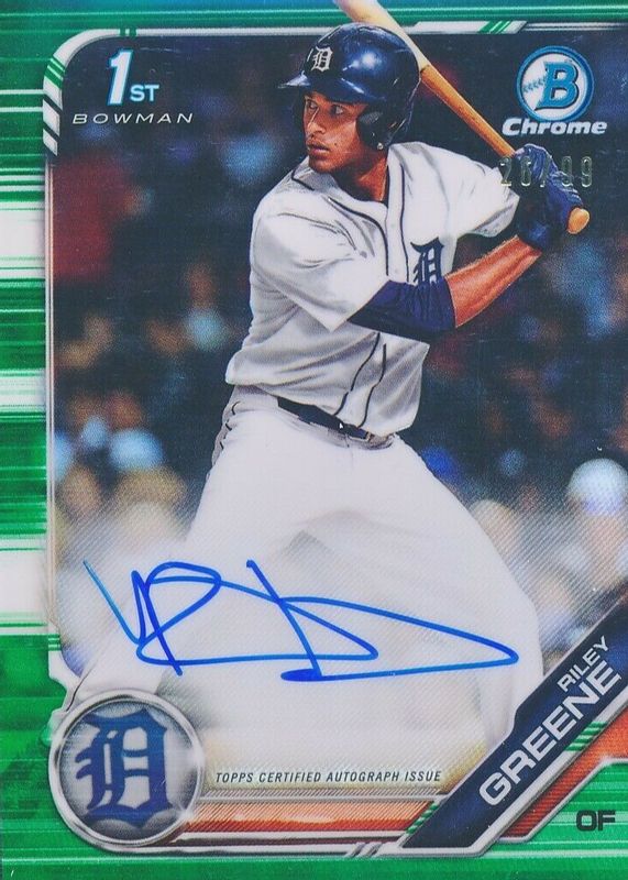 RILEY GREENE AUTO 2019 Bowman Chrome Draft GREEN REFRACTOR #/99 RC Tigers CDA-RG