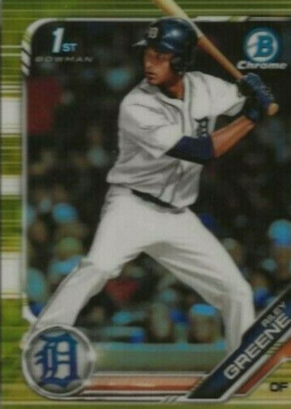 The Riley Greene 2019 Bowman Draft #BDC-50 Chrome - Gold Refractor /50 (1st) card in Raw condition has not changed in price in the last 30 days and was last sold for $144.24 .
