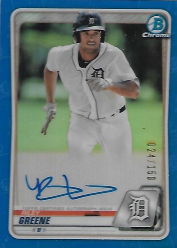 Riley Greene Blue 2020 Bowman Chrome Auto Refractor /150 NRMT or Better