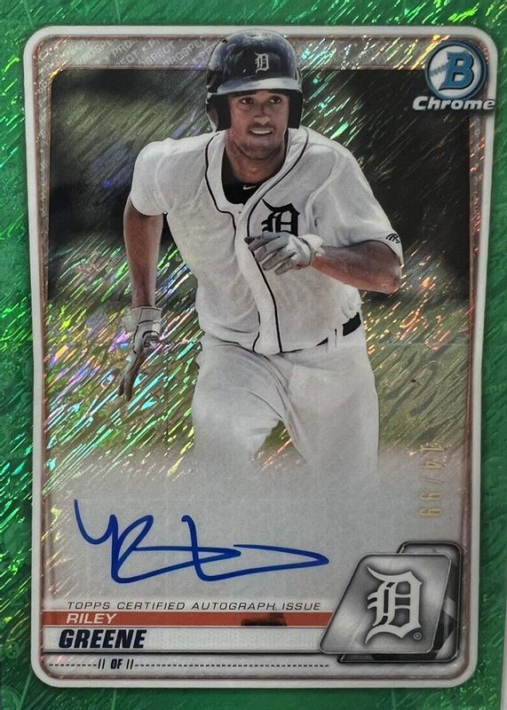 2020 Bowman Chrome Green Shimmer Refractor Riley Greene RC Rookie AUTO /99