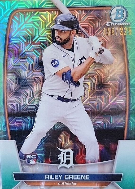 Riley Greene 2023 Bowman Mega Box #90 Chrome - Aqua Mojo Refractor /225 Rookie RAW Price Guide