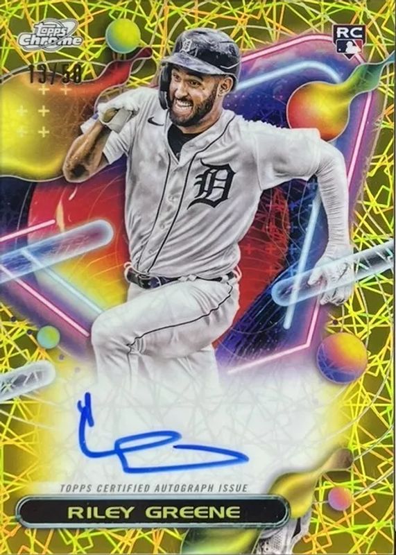 2023 Topps Chrome Cosmic Riley Greene Rookie Gold Auto #d 30/50 Tigers RC