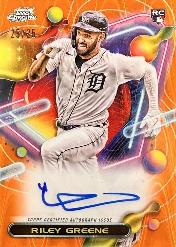 Auctions Ending Soon for Riley Greene 2023 Topps Chrome Cosmic #CCA-RG Autographs - Orange Galactic Refractor /25 Rookie RAW