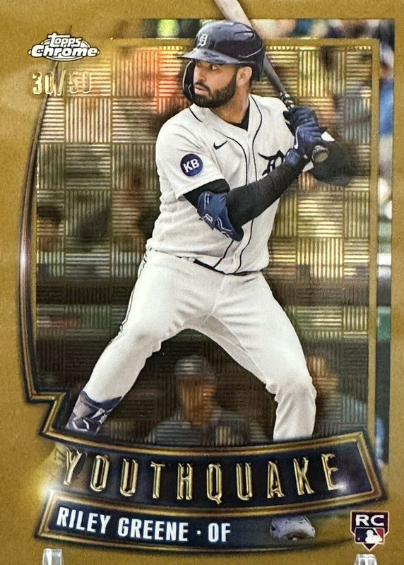 RILEY GREENE 2023 TOPPS CHROME YOUTHQUAKE ROOKIE GOLD REFRACTOR RC /50 Q4854