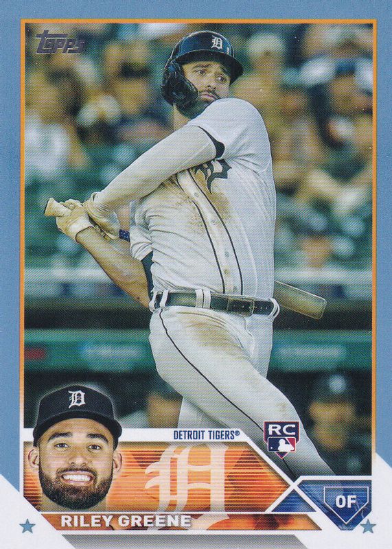 This card is 1 of 20 Riley Greene's card variations in the 2023 Topps set being tracked by Sports Card Investor, including Base, Gold Foil, Rainbow Foil, Royal Blue, and Gold /2023.