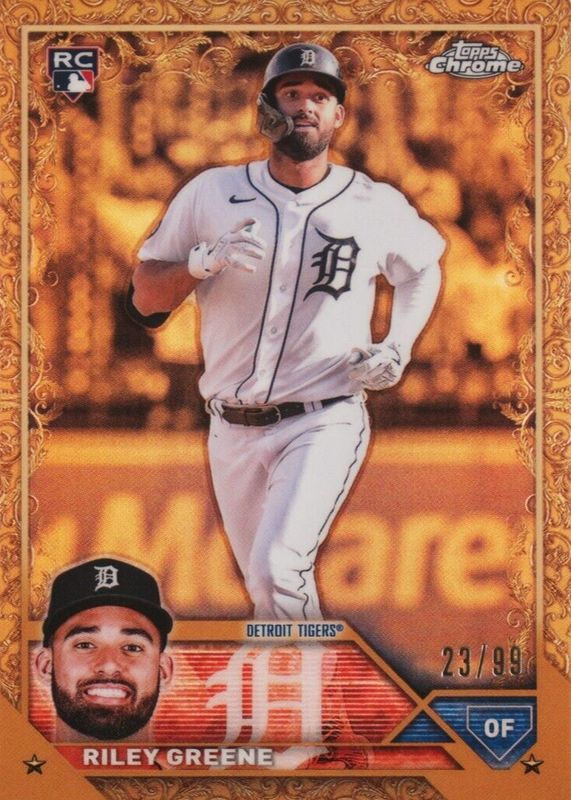 The Riley Greene 2023 Topps Gilded Collection #98 Base /99 Rookie card in Raw condition has not changed in price in the last 30 days and was last sold for $46.05 .