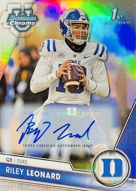 2023 Bowman Chrome University RILEY LEONARD 1st Refractor AUTO /499 #6 Duke (RC)