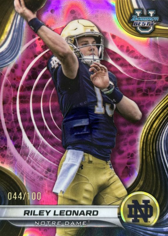 Riley Leonard 2024 BOWMAN BEST UNIVERSITY ROOKIE PINK LAVA REFRACTOR /100 IRISH
