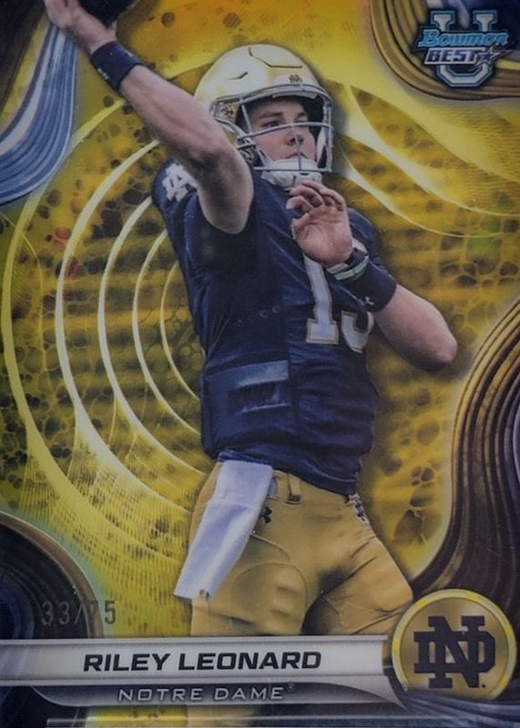 RILEY LEONARD 2024 BOWMAN UNIVERSITY'S BEST YELLOW REFRACTOR #/75 COLOR MATCH