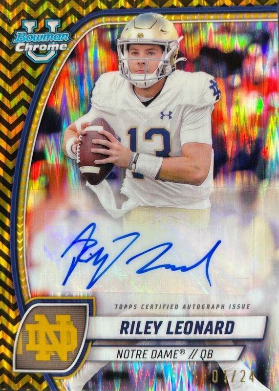2024 Bowman Chrome U RILEY LEONARD Black Gold Stealth Rookie Auto /24 Notre Dame