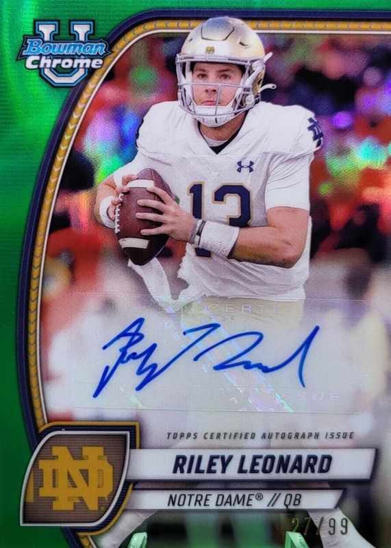 🔥RILEY LEONARD🔥2024 BOWMAN U CHROME | PROSPECT AUTO | GREEN REFRACTOR | 85/99